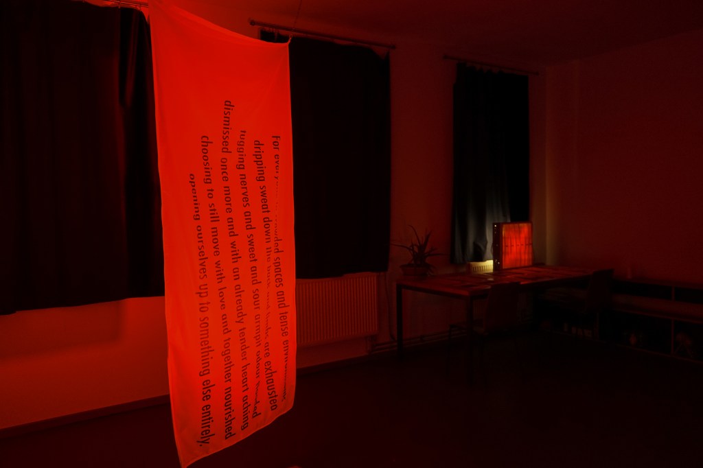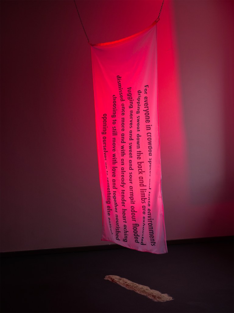 Video, aprox. 15mins, printed textile, asparagus powder, roller bandage