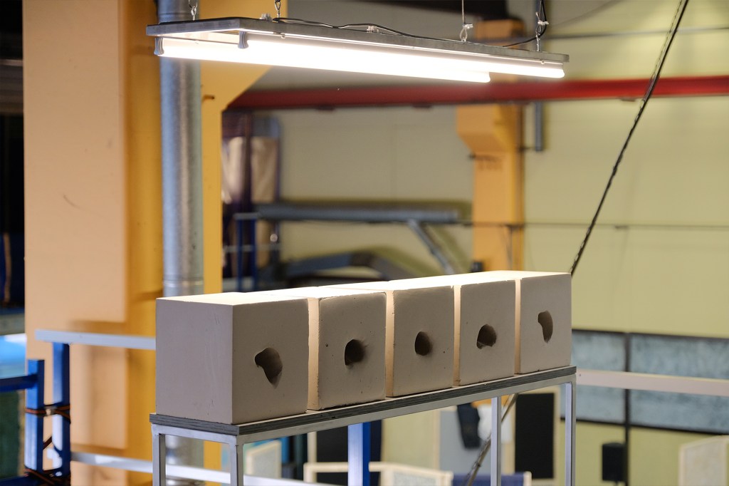 Audio Installation, 5x plaster cubes, metal structure