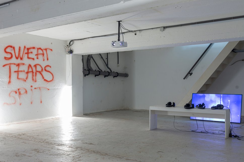 Spit becomes both subject and material: a paradoxical fluid that signifies affection and aggression, purity and pollution, control and loss. It lives in the mouth, mingles with speech and breath, carries scent and contamination, and exits the body with a sound that punctuates contempt. Traditionally relegated to the vulgar and improper, saliva is one of the bodily fluid – alongside sweat, tears, and menstrual blood – that must be contained. Through spitting, the work reflects on uncomfortable feelings and emotional states that escape or exceed language.