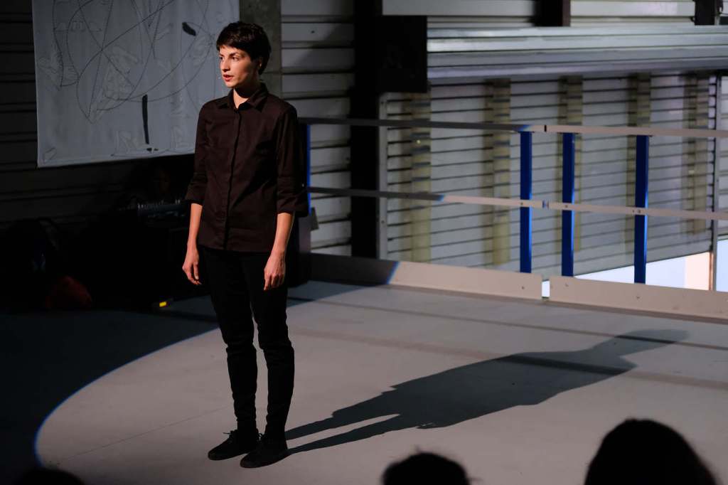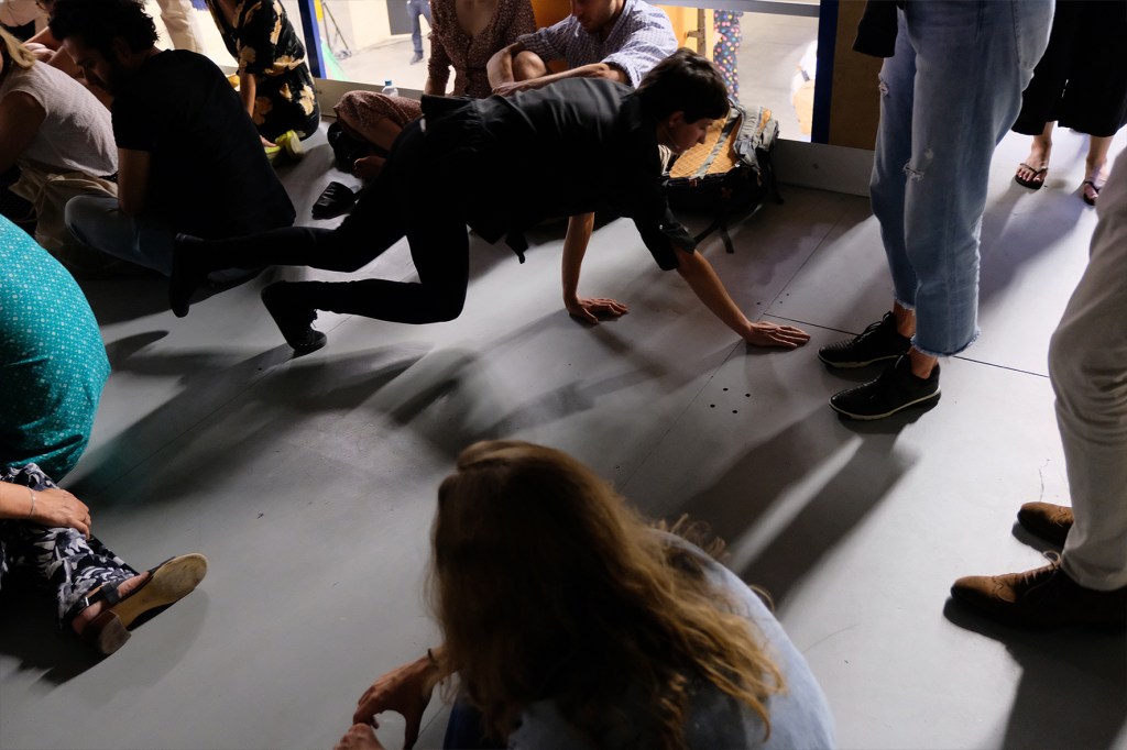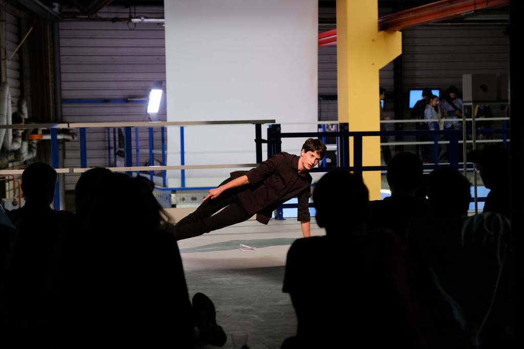 See Something Suspicious explores how gestures of vigilance and mistrust shape movement through space. Drawing on choreographies and behaviors associated with suspicion—furtive glances, sudden stillness, altered posture—the performance evokes the atmosphere of a body on alert, navigating public environments marked by social tension.